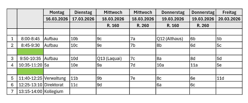 Die Klassen 11a,11b,11c,11d sind zum Großteil in Lyon. Vermutlich findet für Sie ein Ersatztermin statt am 26.06.2026 um 8:00 Uhr, jedoch ohne Fotobox.
